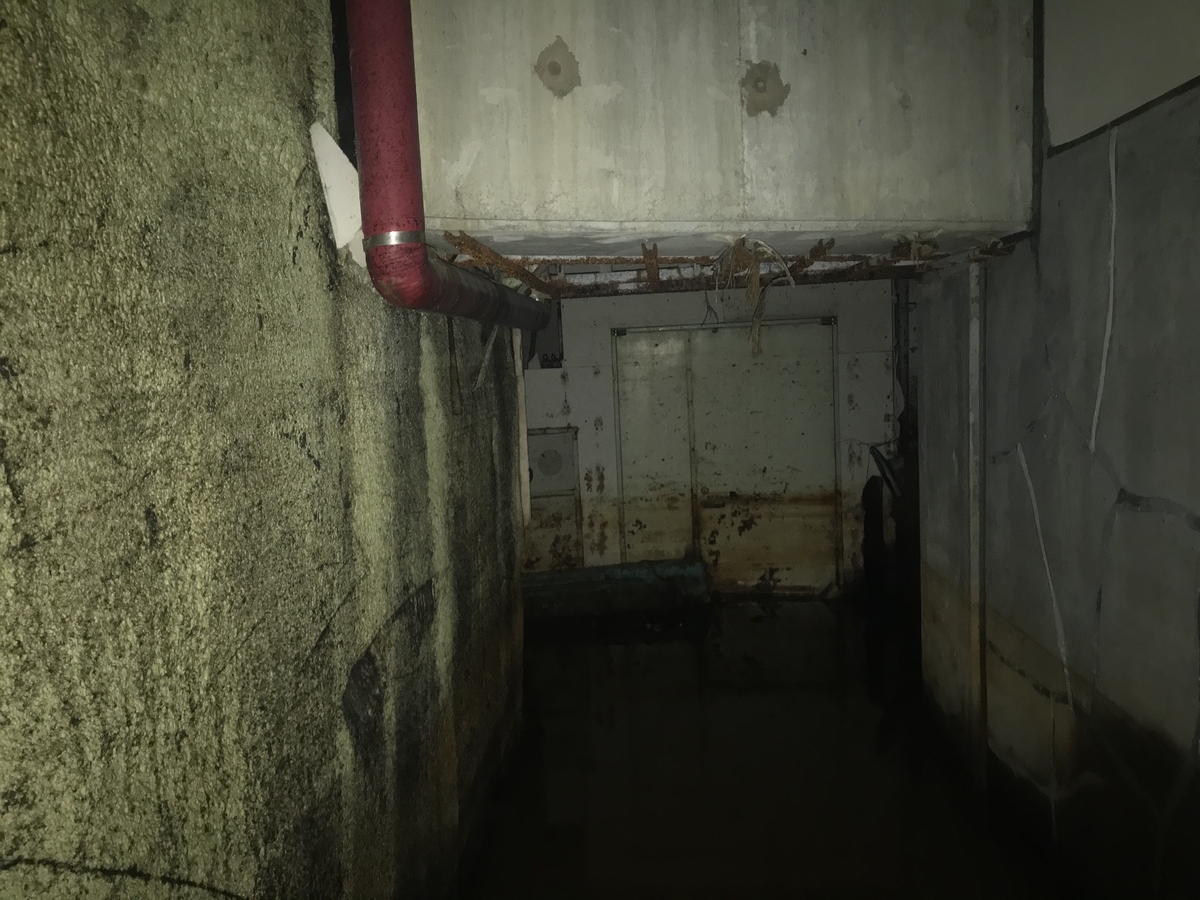 通路を進んだ先に地下へ繋がる階段を発見。降りてみたはいいけどウェーダーがないので引き返そうと思います..
