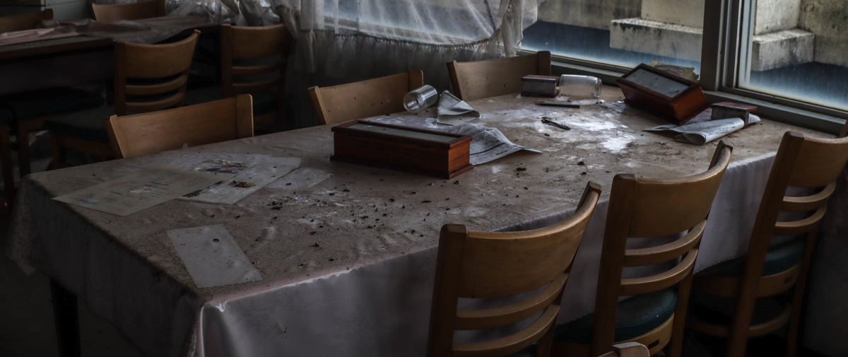 避難した当時から変わらない、何も。完全に時間が止まっている。
