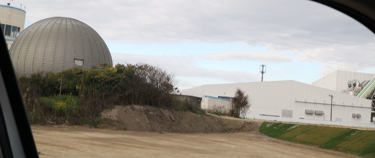 振り向くと造成中の大地と減容化施設...その左隣に..